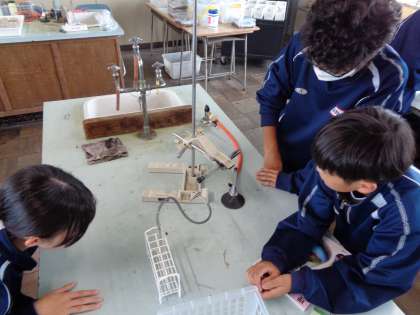 2年生の理科では、安全に気を付けながら実験をしていました。