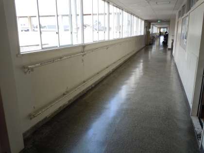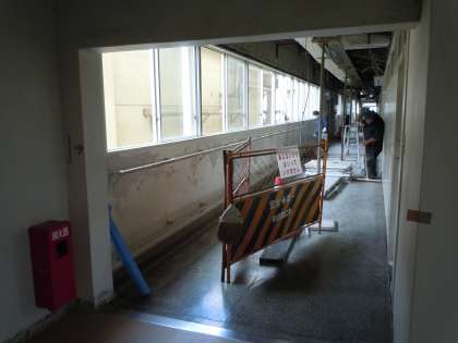 このホームページや教育メールでもお知らせしましたが,現在2号館廊下の改修工事を行っています。1階と3階の通行ができませんので,2号館の移動は2階を御利用ください。御迷惑をおかけしますが,よろしくお願いします。