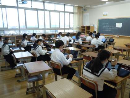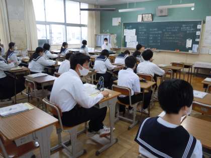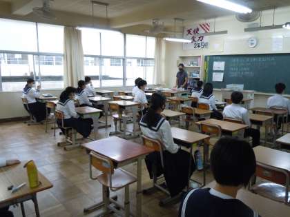 放送を通して校長先生からお話がありました。夏休み中の二中生の活躍について,これからの学校行事について,オンライン授業について,そして,コロナ禍の重苦しい雰囲気の中ではありますが,前を向いて頑張りましょうという話がありました。