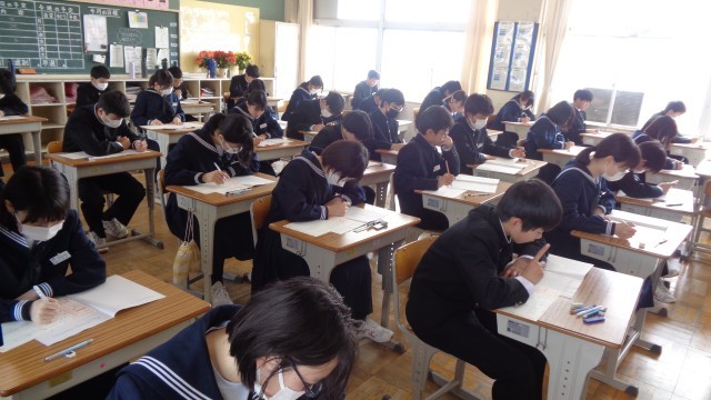 4月17日(木)3年生が全国学力・学習状況調査に臨んでます。
