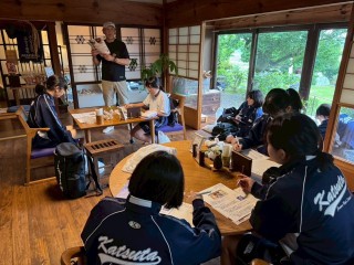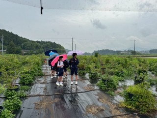 企業見学班は、バラ園、果樹園、線香工房に分かれ、石岡八郷地区の豊かな自然に根ざした産業に触れることができました。