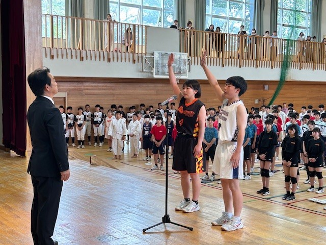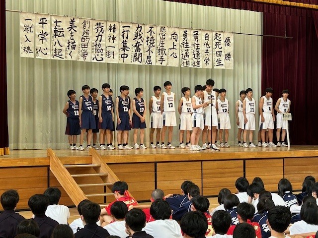 市総体に向けた壮行会と文化部の目標発表会が行われました。