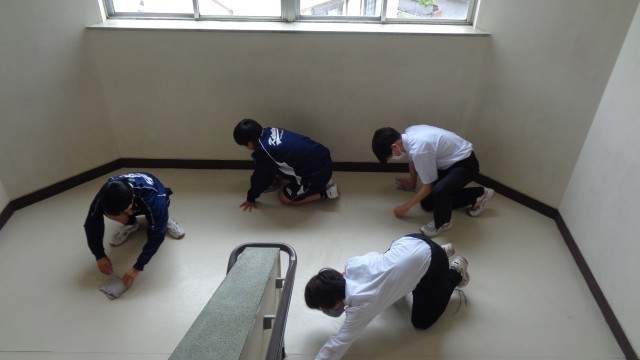 少ない人数でも、自分の担当場所を、責任をもって掃除しています。