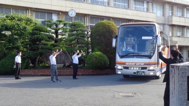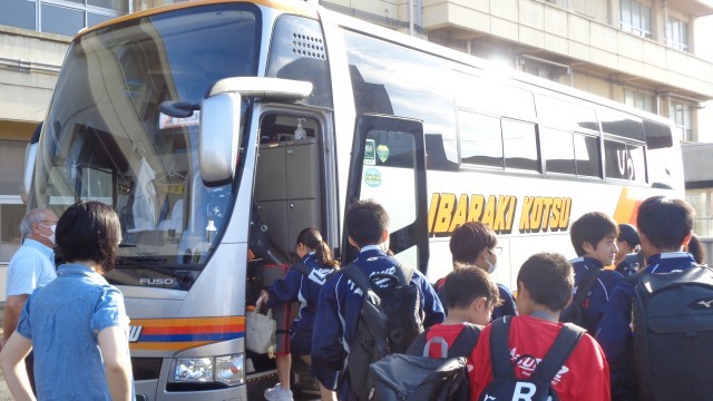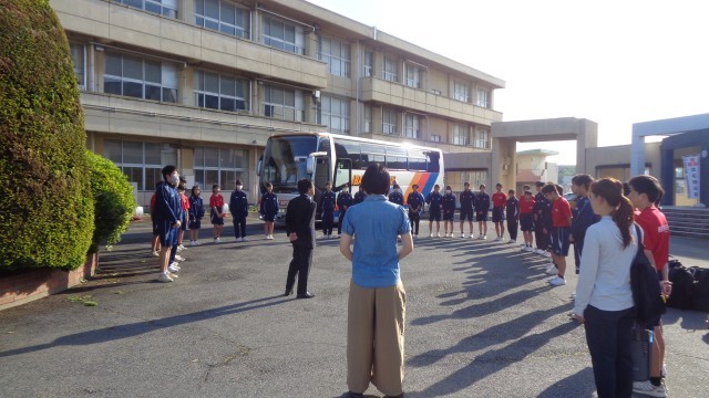 陸上部の選手が会場に向け出発しました。