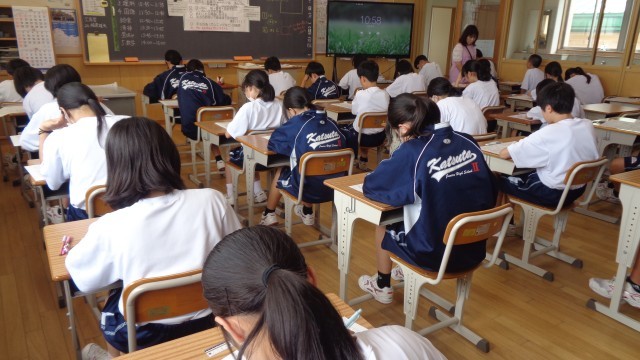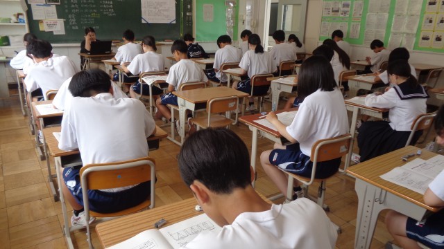 国語、社会、数学、理科、英語の5教科のテストに臨んでいます。