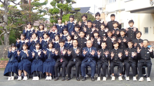 各クラスで集合写真を撮りました。みなさん素敵な笑顔ですね!風が強いため、撮影は困...