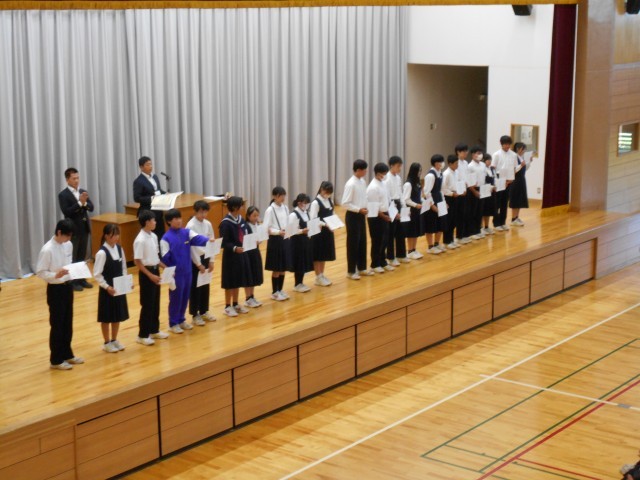 また、終業式後には夏休み以降の大会等で結果を残した生徒の表彰が行われ、多くの温かい拍手が送られていました。