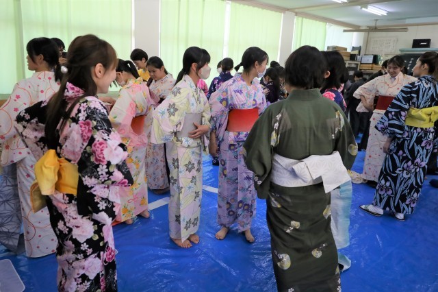 2学年で実施している県の事業「ゆかたの着方研修会」を、前回実施できなかった残りの3クラスで行いました。