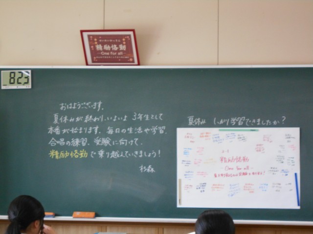 9月からも学習や部活動などで、それぞれが目標とするところに向けて、一日一日を大切にしていきましょう。