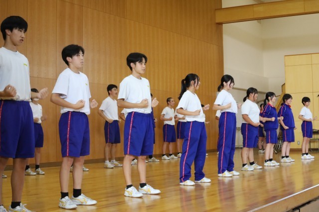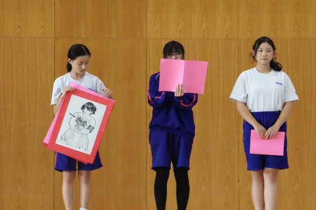 運動部にとっては、3年生から部活動を引き継ぎ、新体制となって初めての大きな大会です。各部からは新人戦にかける意気込みが感じられ、頼もしく成長した姿を見ることができました。文化部の生徒からは思いのこもった作品、3年生からは、後輩に託した思いの感じられる激励、また応援団からは力強いエールが送られ、温かくも気の引き締まる雰囲気となった壮行会でした。