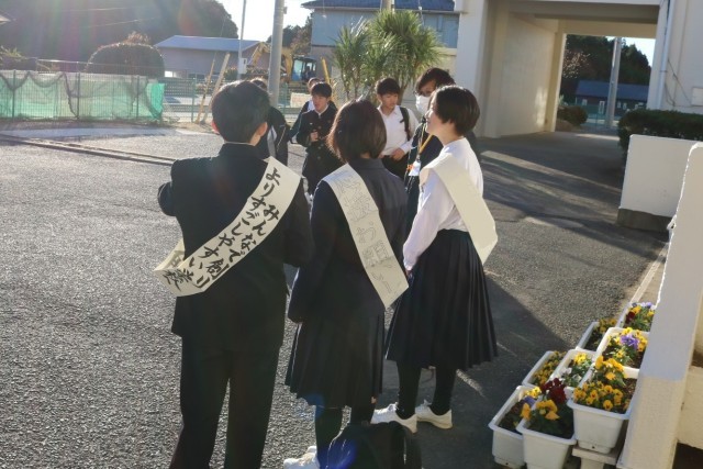 登校する生徒に向けた気持ちの入った元気な声に自然と挨拶を返す子が多く見られました。
