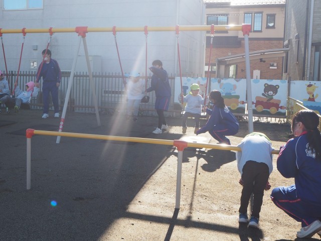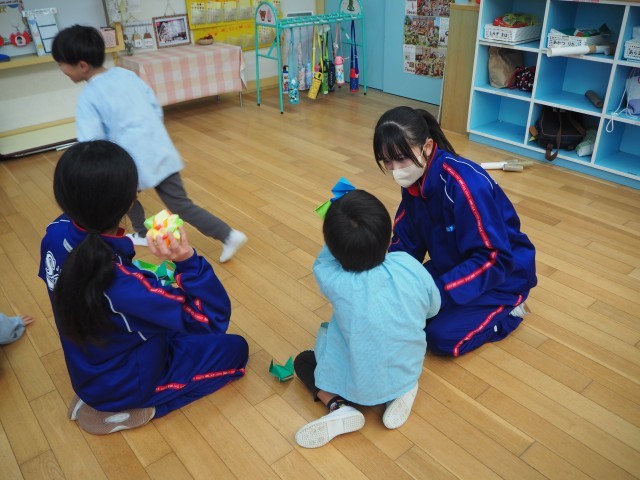 12/15(月) 2年生の家庭科での保育実習を佐野幼稚園で行いました。今年度最後の活動です。園児に対して優しく接しながら楽しく活動することができました。