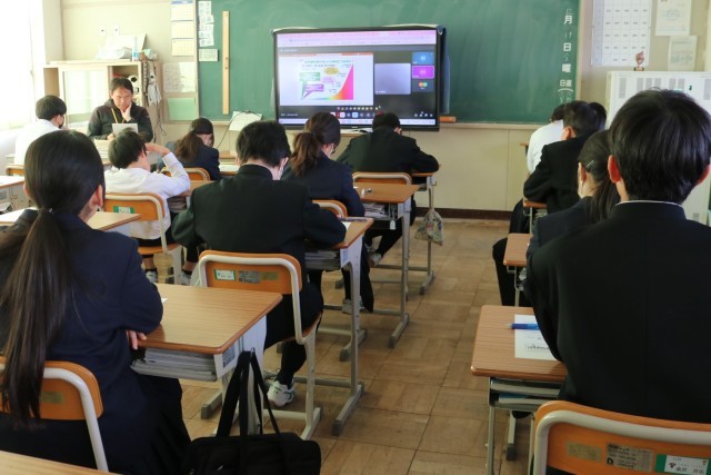 12/19(金) 1年生で原子力防災教室を、核燃料サイクル工学研究所「スイートポテト」の方々を講師にPTA会議室から1年生の各教室へのオンラインで行いました。昼休みには、全校で原子力災害を想定した屋内退避の避難訓練を実施し、原子力災害時にはどのような行動をとるべきか、正しい知識と対応について理解を深めました。