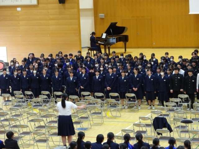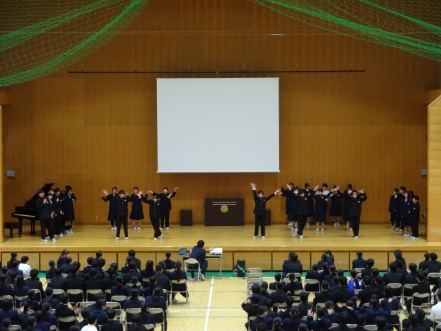 3年生を送る会では、生徒会、1年生、2年生からの発表があり、その後1・2年生の合唱と3年生の合唱が行われました。