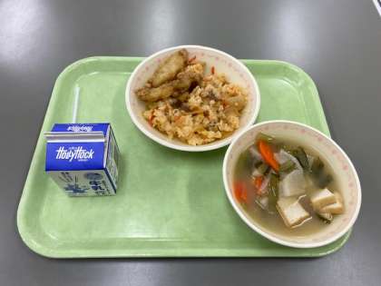 今日の給食は生徒に大人気の「キムタクご飯」でした。