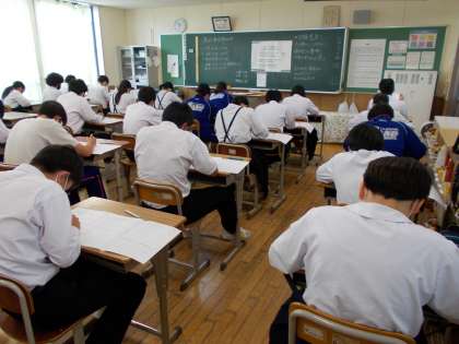 2年生が新人戦で活躍している陰で3年生は第4回実力テスト。夏休みの努力の成果が試される大切なテストが21日22日の二日間実施されました。テストに取り組む姿勢は真剣そのもの。その姿に成長を感じます。毎年、3年生はこの時期から自分の学習に真剣さが増してくるようです。生徒たちの頑張りが生徒たちの笑顔に変わることを願うばかりです。