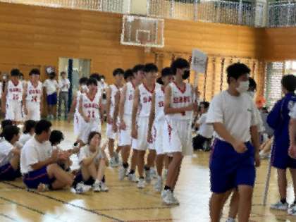 男子バスケットボール部員の決意を紹介します。「僕たちバスケットボール部の目標は県ベスト3です。この目標を達成するために日々の練習に励んできました。目標を達成できるように頑張りますので、応援よろしくお願いいたします。」