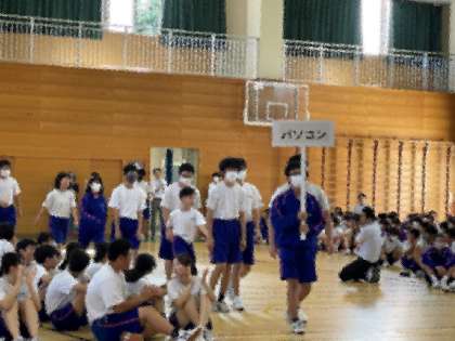 パソコン部員の決意を紹介します。「皆さんこんにちは。パソコン部です。パソコン部ではプログラミングやタイピング、ゲームなどを毎日楽しんでいます。新体制になっても、部員同士が楽しく活動しています。これからも楽しい活動を続けていきます。」