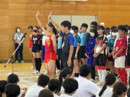 選手宣誓の様子です。代表の主将が堂々と、凜とした素晴らしい態度で、新人戦に向けての熱い決意を述べてくれました。