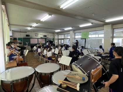 いよいよ12日に行われる吹奏楽コンクール県大会に向けて、吹奏楽部員の皆さんが練習に打ち込み、東関東大会出場を目指して取り組んでいます。今年の自由曲は、難易度の高い曲ではありますが、一人一人のパートがしっかりと音を出しリズムを合わせ一体感のある素晴らしい楽曲に仕上がっています。吹奏楽部の皆さんの健闘を祈ります!