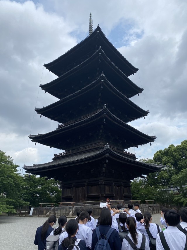 昨日は朝から元気に出発し、無事京都に着きました。京都では学級別研修として、クラスごとに話し合って決めた場所を見学しました。
