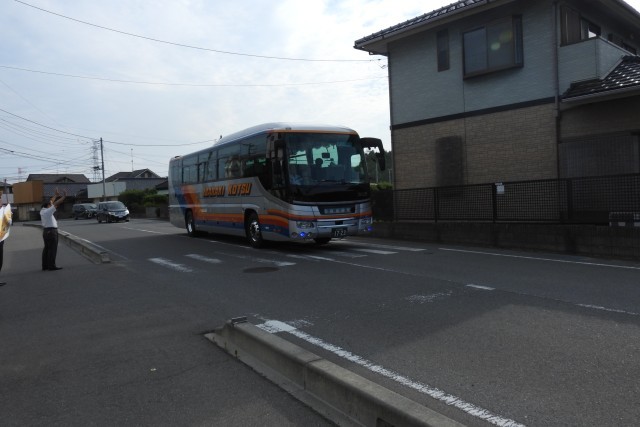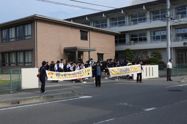 出発しました。学校残留職員の見送りを受けながら、笑顔で出発していきました。