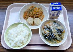 ごはん 牛乳 えびしゅうまい 春雨のカラフル炒め わかめスープ