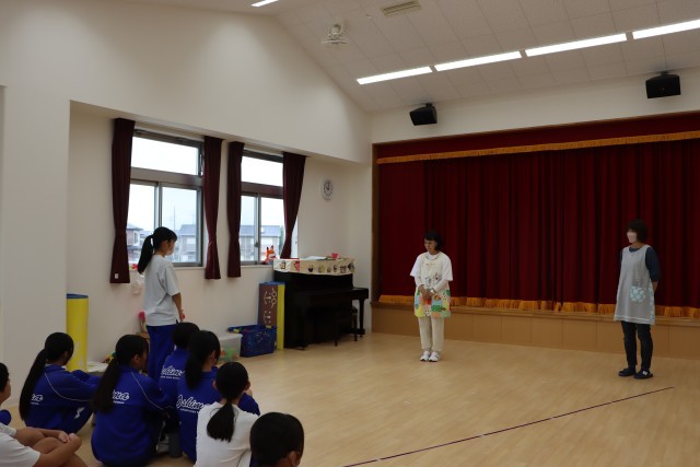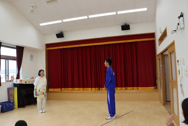 当日は、生徒たちが手作りした絵本の読み聞かせや手遊び、粘土遊びなどを通して、園児の皆さんと交流しました。最初は少し緊張していた生徒たちも、子どもたちの元気な笑顔や反応に触れるうちに自然と笑顔になり、やさしく声をかけながら積極的に関わる姿が見られました。