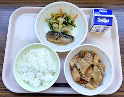 ごはん 牛乳 いわしのごまみそ煮 からしあえ 豚肉と大根の煮物