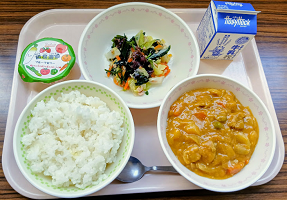 ごはん 牛乳 昔のカレー 海藻サラダ 給食週間ゼリー