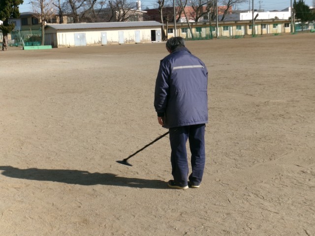 学校管理課が配備した金属探知機をお借りし、グランドの危険物の確認除去作業を行っています。