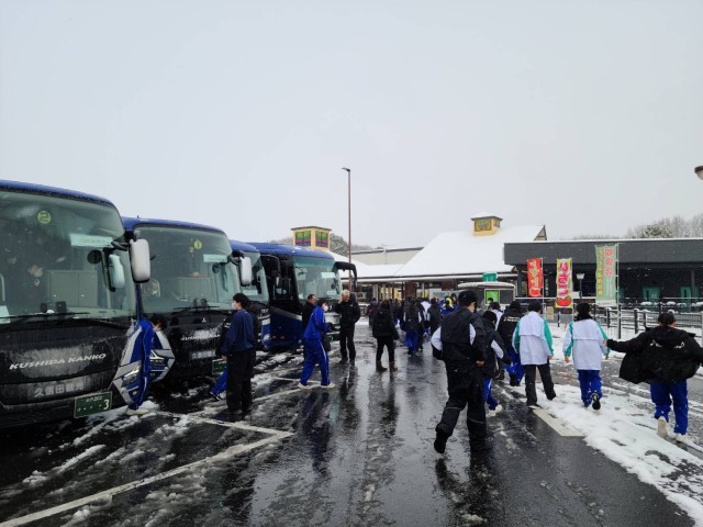 壬生サービスエリアに到着しました。トイレ休憩のみで、出発です。雪深いです。