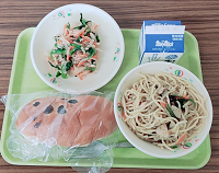 小型レーズンパン 牛乳 ジェノベーゼスパゲッティ ツナサラダ