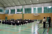 班別活動のあと河村能楽堂で能楽を鑑賞しました。わかりやすい説明と本格的な能楽に興味津々の様子でした。代表者が舞台に上がり、楽器や所作、面の体験をしました。