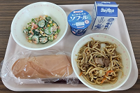 ミニコッペパン 牛乳 那珂湊焼きそば 枝豆サラダ ヨーグルト