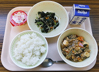 ごはん 牛乳 四川風マーボー豆腐 わかめのナムル 杏仁豆腐