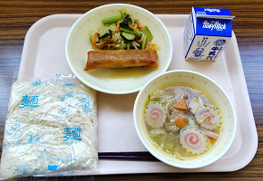 チャンポンうどん 牛乳 春巻き 中華あえ