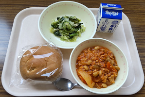 ミルクパン 牛乳 ポークビーンズ グリーンサラダ