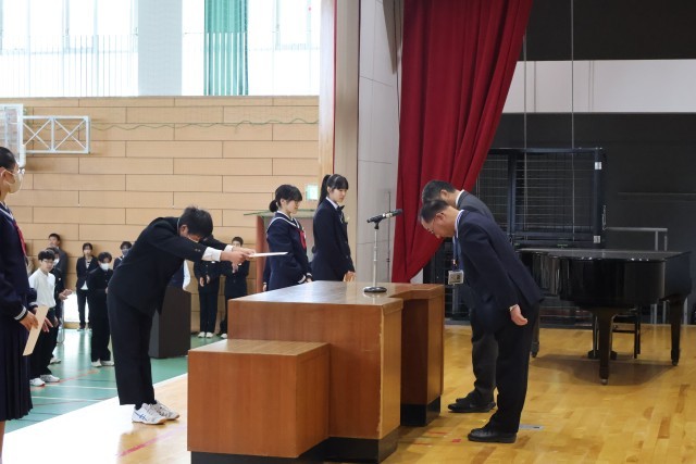 令和7年度の前期任命式が行われました。各クラスから選ばれた学級委員や専門委員会の委員長が任命されました。任命された生徒は学校生活をより良くしようと、決意を新たにしたようでした。一人ひとりの責任感とリーダーシップが、これからの学校生活に良い影響をもたらしてくれることを期待しています。