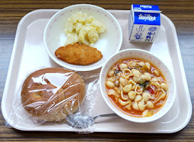 黒パン 牛乳 白身魚のカレーフライ 粉ふきいも ミネストローネ