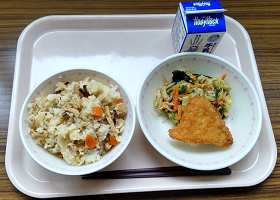 こぎつねごはん 牛乳 もうかフライ ごまあえ