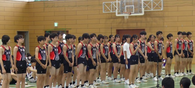 5月30日、本校体育館で、市総体、中央地区陸上、中央地区水泳に出場する生徒のための「壮行会」が行われました。