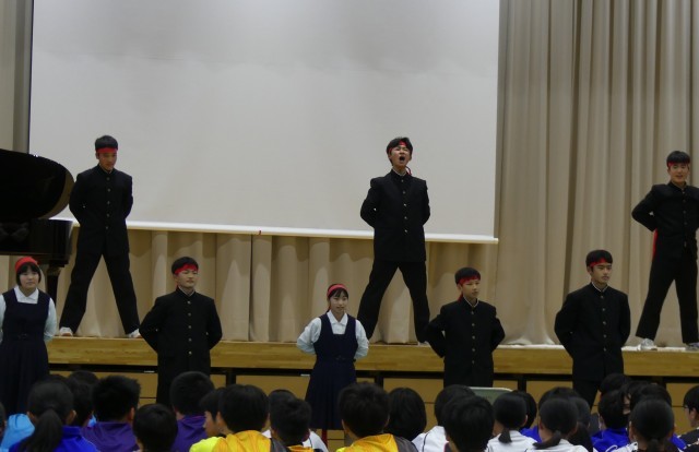 大会に出場する生徒は、吹奏楽部の演奏に合わせて堂々と入場し、しっかりと決意表明をしました。また、2年生の有志による応援団からは、ユーモアのある演出と温かみのあるメッセージ、力強いエールが贈られました。学校全体が一丸となって出場者を送り出す、心のこもった壮行会となりました。