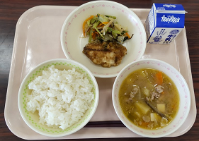 ごはん 牛乳 あじの南蛮漬け ごま昆布あえ 豚汁