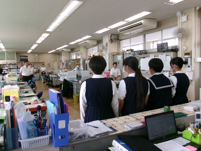 先程、発表する生徒2名と発表者を紹介する生徒2名が文化会館に向けて出発しました。