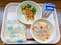 【ソフトメン献立】ソフトメン 牛乳 焼きぎょうざ 中華あえ チャンポンスープエネ...