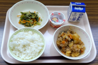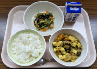ごはん 牛乳 豆腐のカレー煮 小松菜サラダエネルギー823kcal たんぱく質3...