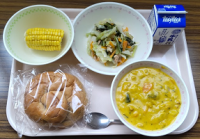 【地元食材を味わおう(とうもろこし)】黒パン 牛乳 かぼちゃのシチュー レモンド...