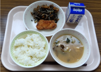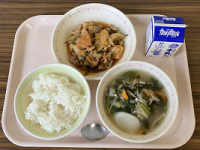 ごはん 牛乳 鶏肉の唐揚げ ひじきの炒め煮 なめこ汁エネルギー800kcal た...