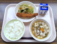 ごはん 牛乳 メンツカツ 土佐あえ 実だくさん汁エネルギー868kcal たんぱ...